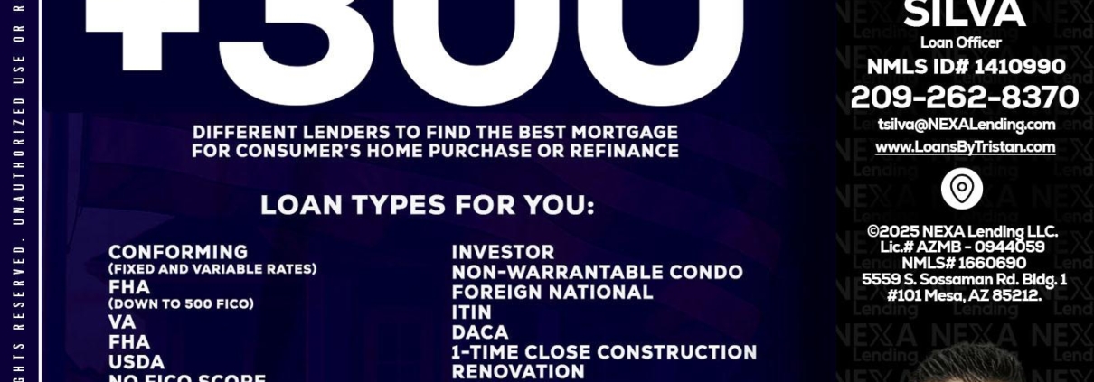 Hi, my name is Tristan Silva. I’m a Loan Officer with NEXA Lending LLC., offering personalized mortgage solutions, fast customized quotes, great rates and service with integrity.