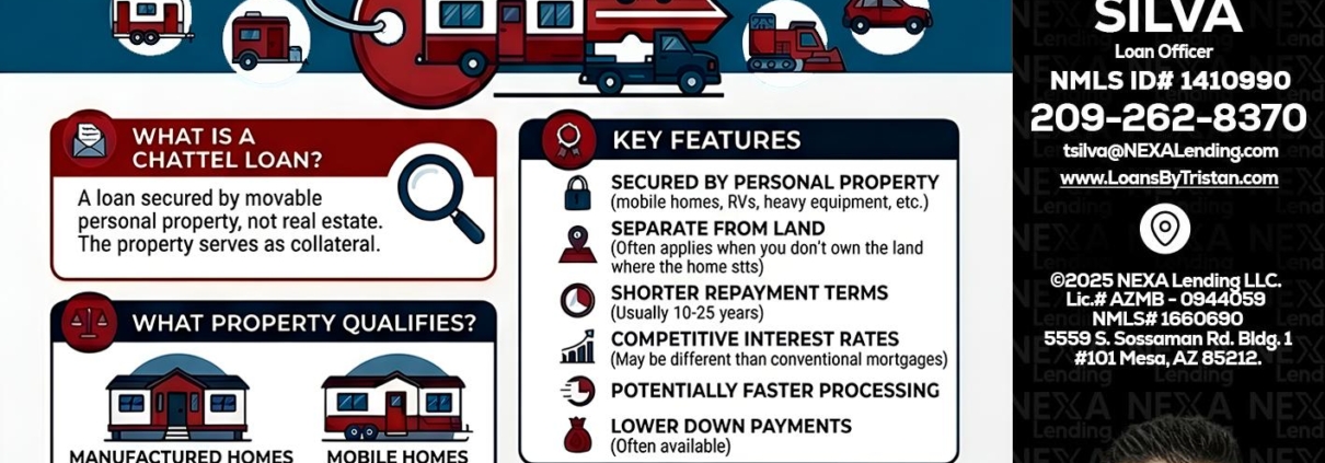 Hi, my name is Tristan Silva. I’m a Loan Officer offering personalized mortgage solutions, fast customized quotes, great rates and service with integrity. If you’re interested in learning more about the Chattel loan or any other, just let me know and I’ll walk you through your options.