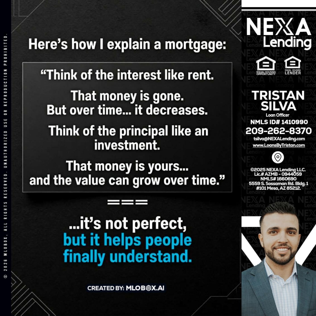 Hi, my name is Tristan Silva. I’m a Loan Officer with NEXA Lending LLC., offering personalized mortgage solutions, fast customized quotes, great rates and service with integrity.