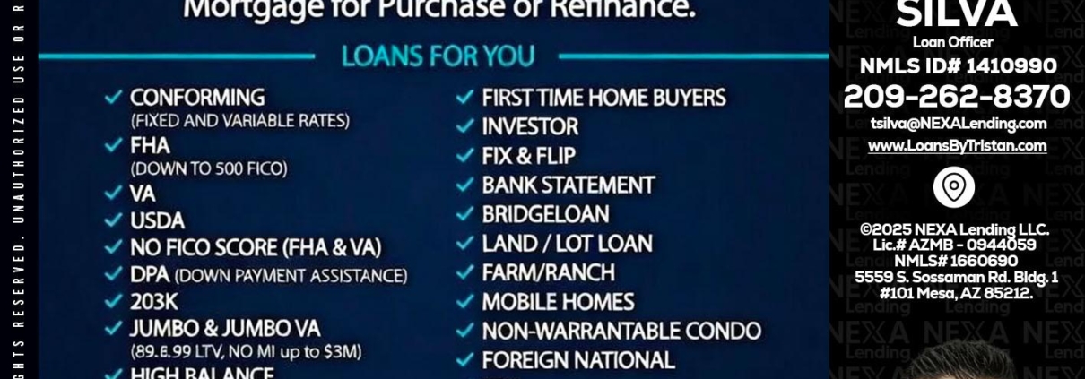 Hi, my name is Tristan Silva. I’m a Loan Officer with NEXA Lending LLC., offering personalized mortgage solutions, fast customized quotes, great rates and service with integrity.
